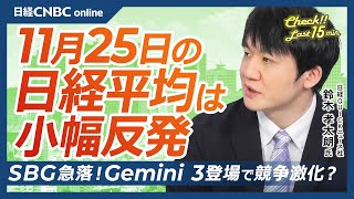 【11月25日(火)東京株式市場】日経平均は反発/Gemini 3高評価でOpenAIに出資するSBG急落/キオクシアはサンディスクのS&P採用で急反発/エーザイ開発のアルツハイマー薬の優位性高まる?