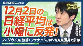 【日経平均は小幅反発|12月2日(火)東京株式市場】ファナックはエヌビディア提携で急伸/長期金利1.877%と17年ぶりの高水準に/三井住友FGは目標株価引き上げ/ワークマンは11月売上好調も下落