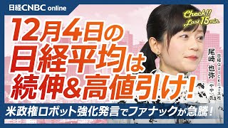 【日経平均株価は続伸|12月4日(木)東京株式市場】TOPIX取引中の最高値更新!/米政権が「ロボット強化発言」でファナック急伸/モスフード競合値上げで“お得感”上場来高値視野/物色広がり大塚HD上昇