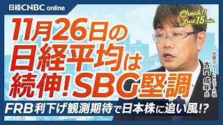 FRB利下げ期待で日本株に追い風【11月26日(水) 東京株式市場】日経平均株価は続伸!/キオクシアは筆頭株主の一部売却で警戒感/SBG堅調もAI競争で不安定?/12月相場は日米金融政策に注目集まる