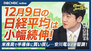 【日経平均は小幅続伸!|12月9日(火)東京株式市場】米株高受け半導体株に買い戻し/メガバンクは高値更新も上昇一服/フィジカルAI関連に物色集中で安川電・川崎重が急騰/SBI新生銀行17日の上場に注目