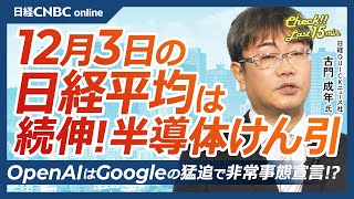 【日経平均株価は続伸!|12月3日(水) 東京株式市場】海外先物買いで一時5万円超/OpenAIはGoogleの猛追に「非常事態」/中国消費関連は春節以降激化?/日銀利上げFRB利下げ市場は見極め局面