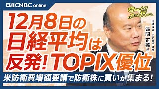 【日経平均は反発!TOPIX優位に|12月8日(月)東京株式市場】米国防費増額要請で防衛関連株に買い集中/長期金利は1.965%で2007年以来の水準/光ファイバー需要でフジクラ値上がり率トップ
