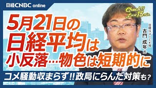 収まらないコメ高騰、新農相は小泉氏に│NQN 古門成年氏【5月21日(水)東京株式市場】日経平均株価は反落、円高が重荷/日本株・防衛株上昇…物色は短期的、半導体株やサンリオは売り/損保大手は減益決算
