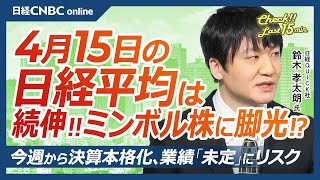 ミンボル株に脚光?主な低ベータ株は│NQN鈴木孝太朗氏【4月15日(火)東京株式市場】日経平均株価は続伸、トランプ氏関税懸念後退か/日米株とも自動車株⇧/小売・内需に熱視線/決算の業績「未定」にリスク