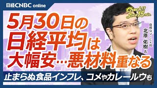 止まらぬ食料品インフレ・コメ高騰│NQN北原祐樹氏【5月30日(金)東京株式市場】日経平均株価は大幅反落、利益確定や円高/トランプ関税懸念続く/エヌビディア決算は/自社株買い過去2番目/来週スイッチ2