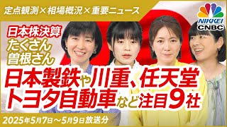 【決算詳報│日本株:日本製鉄、任天堂やスクリンなど9社】日経平均株価は堅調、TOPIX11連騰/米英合意に安心感?/川重など防衛株は/川崎汽や郵船は還元強化/トヨタは今期減益・増配…トランプ関税が重荷