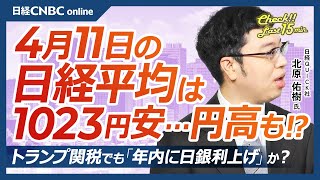 トランプ相互関税でも日銀利上げか│NQN北原祐樹氏【4月11日(金)東京株式市場】日経平均株価は大幅反落、米国株安とドル売りの円高で/対中関税145%…貿易摩擦激化か/日本株・大型株下落、ファストリも