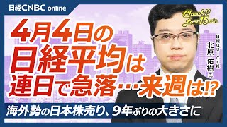 日経平均も米国株も連日で急落│NQN北原祐樹氏【4月4日(金)東京株式市場】トランプ相互関税のリスクオフで円高ドル安/銀行株に売りかさむ/海外勢24年度9兆円日本株売り越し/雇用統計とパウエル議長発言