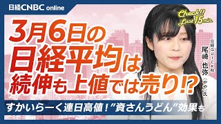 すかいらーく連日高値「資さんうどん」東京初進出の効果も?│NQN尾崎也弥記者【3月6日(木)東京株式市場】日経平均株価は続伸、関税巡るリスク和らぐ/米国株・日本株とも自動車株⇧/重工株や欧州系機械株⇧