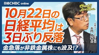 【10月22日(水)東京株式市場】日経平均株価は反落もほぼ横ばい/SBGは5%の下げ/トヨタの急伸がTOPIXを押し上げる/金価格は過去一番の下落/非鉄金属株にも波及/イオンは生活防衛銘柄の勝ち組か