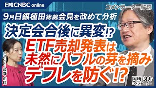 【ETF売却発表は未然にバブルの芽を摘みデフレを防ぐ!?│岡崎良介氏】9月に日銀植田総裁の会見を改めて分析/本格的な金融引き締めに?/現在の相場は過熱感/会見から見るポジティブ面とネガティブ面