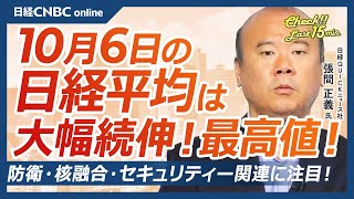 【10月6日(月)東京株式市場】日経平均株価は大幅続伸/サナエノミクスで防衛・核融合・セキュリティー関連に買い/日経半導体指数は3日続伸/半導体関連も高市トレード?/OIS指標での利上げ確率急低下