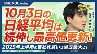【10月3日(金)東京株式市場】日経平均株価は最高値更新/キオクシアが連日のストップ高も過熱感警戒/日立はOpenAI、富士通はNVIDIAと提携で半導体好材料/自社株買い過去最高/直近IPOは苦戦