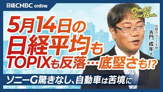 自動車株苦境、ソニーG決算に驚きなし│NQN古門成年氏【5月14日(水)東京株式市場】日経平均株価もTOPIXも反落、米中関税緩和で「期待で買って事実で売り」か/米国株や中国株より日本株/円安に歯止め