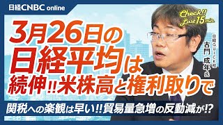 トランプ関税、楽観はNG│NQN古門成年氏【3月26日(水)東京株式市場】日経平均株価は続伸、米国株高と権利どり/日本株・高配当銘柄、NTTなどに買い/円安は石破首相の商品券問題も影響?/東証S指数⇧