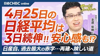 日産自、過去最大の赤字│NQN北原祐樹氏【4月25日(金)東京株式市場】日経平均株価は3日続伸、米国株高と円安続き/米中貿易摩擦緩和に期待/日本株・キヤノン決算トランプ関税影響340億円試算/日銀会合