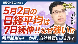 トランプ相互関税から一か月…日本株は自社株買いが支え│NQN北原祐樹氏【5月2日(金)東京株式市場】日経平均株価は7日続伸、円安や関税交渉通過で/ドル円145円台で自動車株⇧/ヤマトHD⇧コカBJH⇩