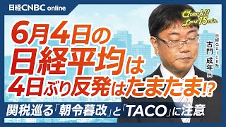 関税「朝令暮改」とTACOに注意【6月4日(水)東京株式市場】日経平均株価は4日ぶり反発、米国株高や円安で/エヌビディア、米証券が投資評価引き上げ/日本株・防衛など材料株への物色/韓国大統領に李在明氏