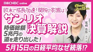 【サンリオ・決算解説】時価総額5兆円へ、ROEは48%超え!?│NQN尾崎也弥氏【5月15日(木)東京株式市場】日経平均株価は続落、円安是正思惑再び/日本株・自動車株軟調、中小型株も/エヌビディア上昇