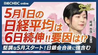 5月相場は堅調なスタート!日銀会合後に強含む│NQN尾崎也弥氏【5月1日(木)東京株式市場】日経平均株価は6日続伸、円安進む/米国株・メタなど好決算で日本株も⇧/村田製急落/海運株売り、還元期待しぼむ