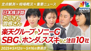【決算詳報│日本株:みずほFGや楽天グループ、SBGなど】今週の日経平均と米国株は米中関税緩和に安心感も円安是正の思惑で失速/ソニーGと任天堂比較/自動車株苦難/自社株買いに強い期待/好調パンパシHD