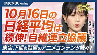 【10月16日(木)東京株式市場】日経平均株価は続伸/自民と維新で連立協議/大阪関連銘柄に買い/ベッセント氏による円安けん制/テクセンドIPO/東宝、決算で利益確定売りも下期も話題アニメ続々