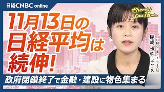 【11月13日(木)東京株式市場】日経平均続伸・TOPIXは連日最高値/FOMC前の“統計空白”に市場は警戒/SBG急落の背景にAI割高感/エムスリー・すかいらーくは好決算で買い集まる/為替も円安加速