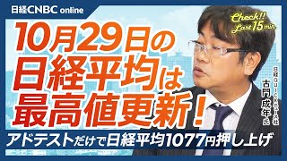 【10月29日(水)東京株式市場】日経平均は続伸しアドテスト1銘柄で1077円押し上げ/決算本格化/業績に伴った株価かも注目/ベッセント氏円安進行をけん制か/明日30日日銀決定会合も利上げは見送りか