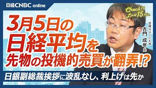 は│NQN古門成年記者【3月5日(水)東京株式市場】日経平均株価は反発、先物が振り回す/トランプ関税で米株急落も商務長官覆す/日本株・広がる株主優待新設・強化
