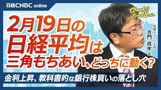 金利上昇、教科書的な銀行株買いに落とし穴│NQN古門成年記者【2月19日(水)東京株式市場】日経平均株価は