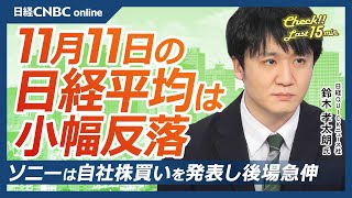 【11月11日(火)東京株式市場】アドバンテスト下げ幅大きく日経平均は伸び悩み/キオクシア、サンディスク連れ高でテンバガー目前/ソニー決算&自社株買いで急伸/コーセー純利益微減に市場はネガティブ反応
