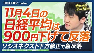 【11月4日(火)東京株式市場】日経平均は反落/ソシオネクスト決算下方修正で急反落/アマゾンはOpenAIにAWS提供で上昇/好決算のファナックは米関税の影響限定的?/海運は地政学リスク後退で需要減か
