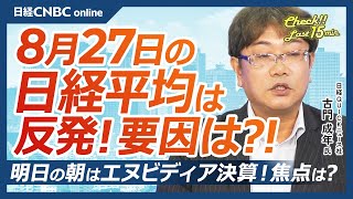 エヌビディア決算前に米ハイテク株高で半導体関連は上昇|NQN古門成年氏【8月27日(水)東京株式市場】日経平均株価は反発/三菱自の通期最終益を下方修正に/ニコンは急伸!仏エシロールから出資引上げ提案で