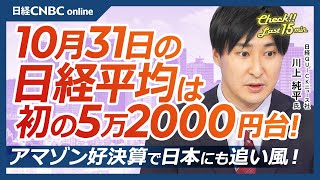 【10月31日(金)東京株式市場】日経平均株価は続伸し最高値更新/アマゾン市場予想上回る好決算で日本の半導体上昇/日立もデータセンター関連の需要取り込み好決算/日産自やデンソーなど下方修正で逆行安