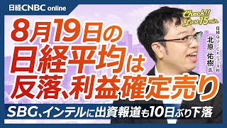 【8月19日(火)東京株式市場】日経平均株価は反落で利益確定売り/SBGはインテルに出資発表も下落/ディーエヌエやヤクルトなどの日本株の高流動性・出遅れ銘柄に注目/パンパシHD、好決算と株式5分割発表
