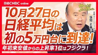 【10月27日(月)東京株式市場】日経平均は続伸し初の5万円台へ!/4月7日の年初来安値から上昇率1位がフジクラ5.1倍/今週から決算シーズン本格化/米国市場はETFや自社株買いで2兆ドルの買い需要?