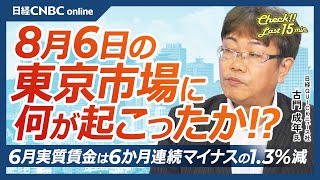 【8月6日(水)東京株式市場】日経平均株価は続伸/投機マネーは三菱重とフジクラに/半導体株の割高感/実態に即しているか/実質賃金6か月連続のマイナス/「消費者の味方」銘柄に買い/自動車決算|日本株