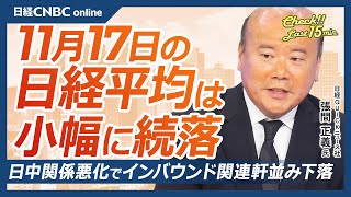 【11月17日(月)東京株式市場】日経平均は小幅続落/日中関係悪化でインバウンド関連総崩れ/決算後は増益企業とアクティビストの動向に注目/米株にヒンデンブルグ・オーメン再来か?/米株3つのプットとは?