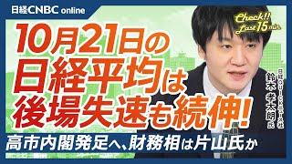 【10月21日(火)東京株式市場】日経平均株価は続伸/第104代首相に高市早苗氏/今日夜に内閣発足へ/財務大臣は規律財政派の片山氏か/後場は利益確定売りに押される展開/SBGは11月11日の決算に注目