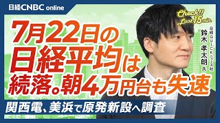 【7月22日(火)東京株式市場】日経平均株価は続落/東宝は「鬼滅の刃」「国宝」効果/選挙関連で小売りに買い集まる/百貨店は別要因で下げ/関西電力は原発新設へ美浜で調査表明/決算発表続々|日本株