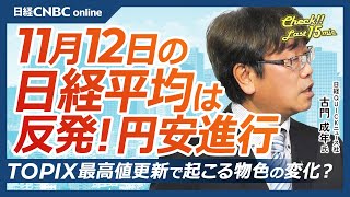 【11月12日(水)東京株式市場】日経平均は反発/AI半導体からバリュー物色でTOPIX最高値/エヌビディアSBGの全株売却影響受け下落/SUMCO半導体工場の投資負担が響き急落/キオクシア13日決算