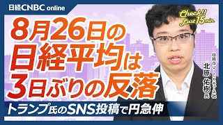 【8月26日(火)東京株式市場】日経平均株価は反落/トランプ氏によるクック氏解任投稿で円急伸/ホンダ、米国で生産の自動車エンジン不具合を調査開始か/モメンタム株ショックに注意/今週エヌビディア決算