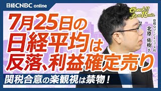 【7月25日(金)東京株式市場】日経平均株価は反落/利益確定売り/決算控えガイダンスリスクを意識/ソニーGはバンナムGへ出資で一時上昇/来週アドテストの決算発表/トランプ関税は楽観禁物|日本株