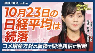 【10月23日(木)東京株式市場】日経平均株価は続落/今晩インテル決算発表/REIT指数2年10か月ぶりの高値/28日のトランプ氏来日控え対米投資関連に注目/鈴木農相発言受けコメ関連銘柄に明暗|日本株