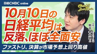 【10月10日(金)東京株式市場】日経平均株価は反落/SBG、25日移動平均線との乖離が広がり過熱感意識/ファストリ、決算が市場予想上回り逆行高/セブン&アイはコンビニ不振で今季予想下方修正|日本株