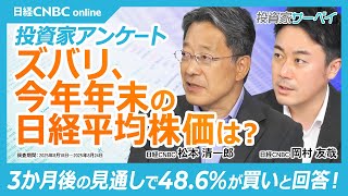 個人投資家アンケート【ズバリ、今年年末の日経平均株価は?】3か月後の日経平均は48.6%が買い/日本株はまだ割安/外国人投資家の動きも/12月決算発表でトランプ関税の影響を受けるのではという回答も/