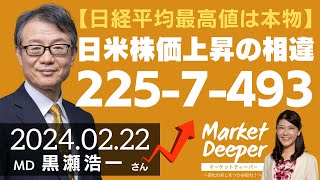 【日米株価上昇の相違/株価指数:225-7-493】日経平均最高値は本物(黒瀬浩一さん)[マーケットディーパー]